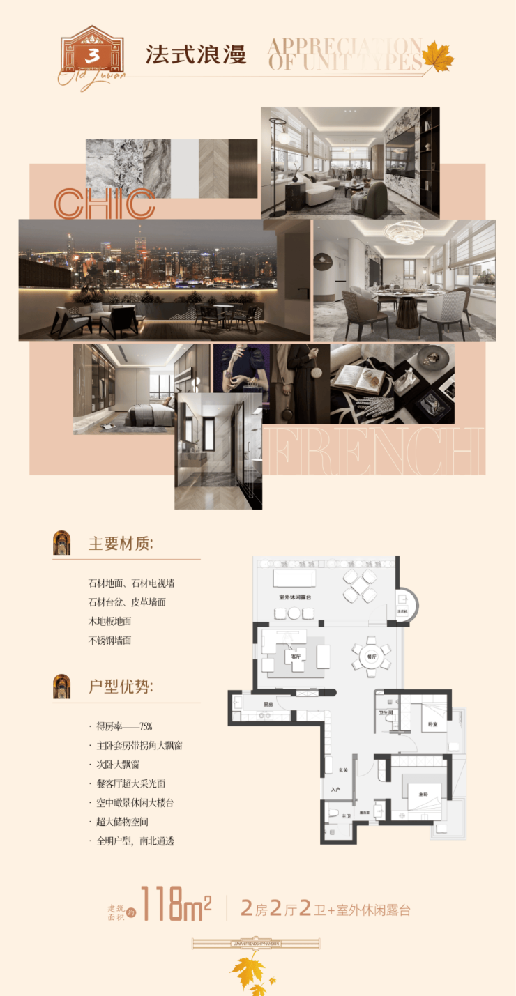 118㎡2房2厅2卫+25㎡室外休闲露台 东北 850万