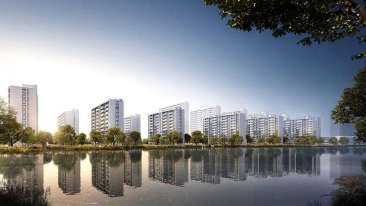 现代美学立面采用 “莫兰迪灰” 色系,搭配浅蓝色大尺度观景窗与铝板线条,营造简洁明快的现代质感。部分楼栋设计 270° 环幕飘窗,最大化引入湖景资源。