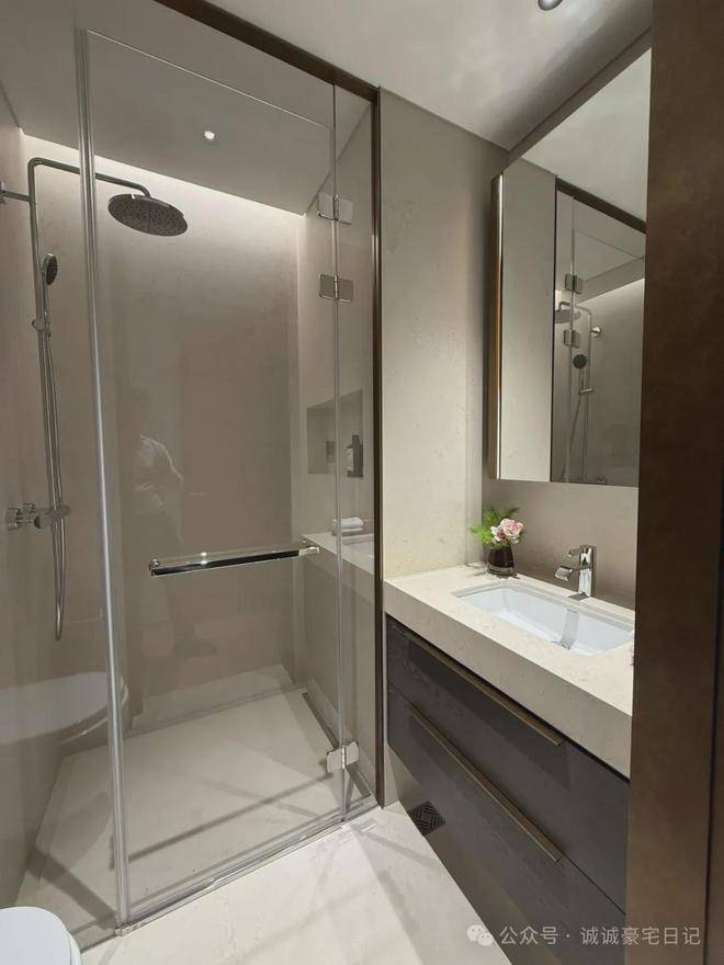 边套户型横厅设计,客厅约5.3米的面宽保证了空间的尺度感,客厅及南侧卧室的大面积落地窗,加上北面大面积飘窗,约270度的采光+视野,保证了室内充足的自然光线。两南一北的卧室布局,尽可能把南向尺度给到卧室,提高居住的舒适性。宽敞的步入式衣帽间,主卫双台盆和宽敞的淋浴区,每一个清晨都是感官的享受,每一个夜晚都是身心的彻底放松。