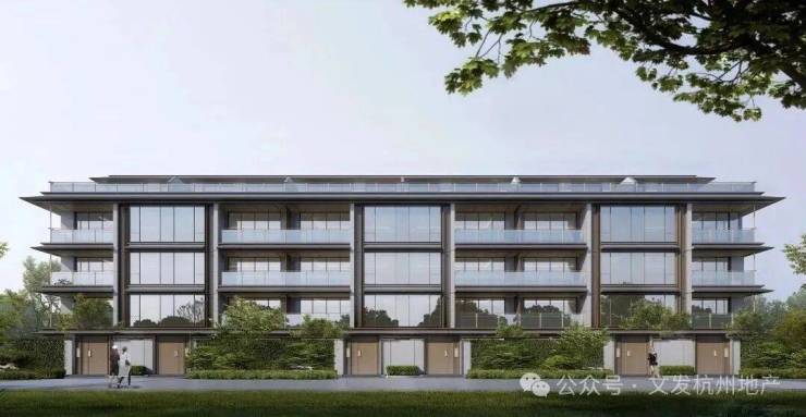 项目定位为高端排屋及叠排社区,建筑设计以新宋风为特色,融入超山宋梅古韵的历史人文底蕴;整体布局以中央山水景观轴为骨架,营造“一轴一带八景十巷”的多进式园林体验。