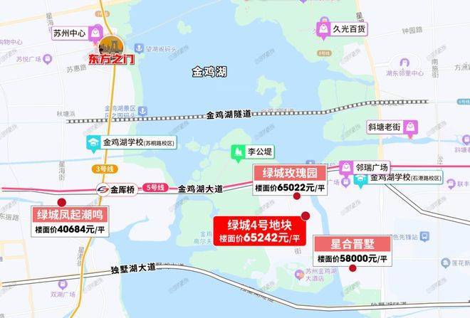 配套上来说,也是比较齐全的。交通上来说,北面靠近金鸡湖大道,直接连接湖西和湖东,往西能上东环,基本上能快速去往核心区。南面靠近独墅湖大道,连接东南环,东面有星湖街,直接串联湖东。北面还有金鸡湖隧道,连接湖西和湖东!
