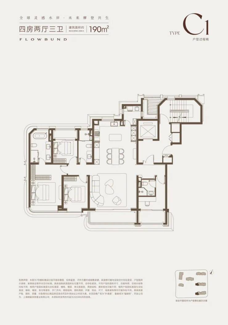 LDKB一体化,中西双厨房、餐厅、客厅外接弧形转角宽景大阳台,空间尺度感拉满!
