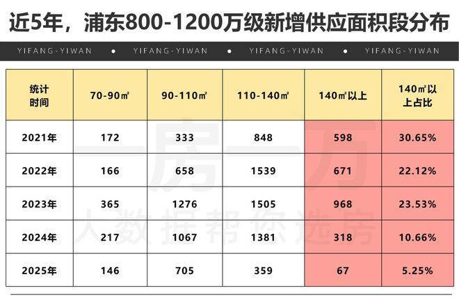我们再将浦东总价800-1200万级的新增供应,细分到户型,你会发现改善客群面临的形势更为严峻。