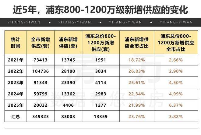 据一房一万数据库显示,近5年来浦东新增供应,全市占比始终不足3成,今年供应走势仍在缩减;