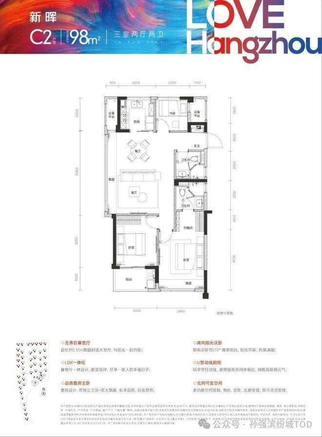 ❍ 杭州罕见的建面约89方三房两卫精装户型