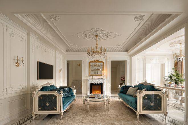 客厅作为家庭核心场域,它以法式设计为骨架,借光线、材质与形态勾勒诗意。婉转线条缠绕空间,温柔色彩铺满墙面与软装,无刻意奢华堆砌,却处处显优雅。