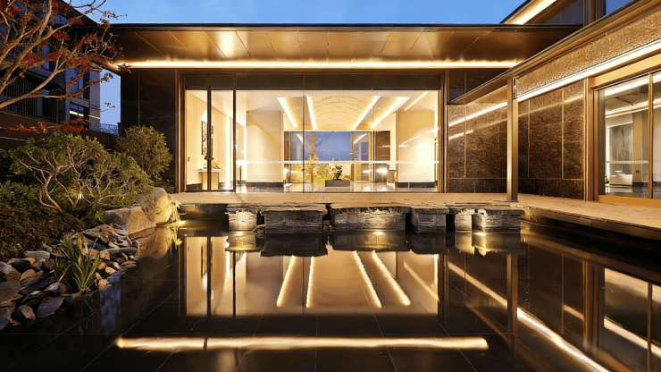 镜面恒温泳池,连接内外,野奢氛围感拉满
