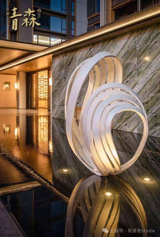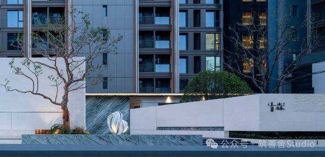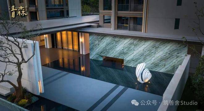 113米恢弘入口,三重归家礼序,于都会之中,邂逅无尽自然之境。首进院:酒店式归家门庭;次进院:森林溪境漫步游园;末进院:定制酒店式归家入户。主入口采用天然石材+艺术雕塑堆砌大气高级感入口。