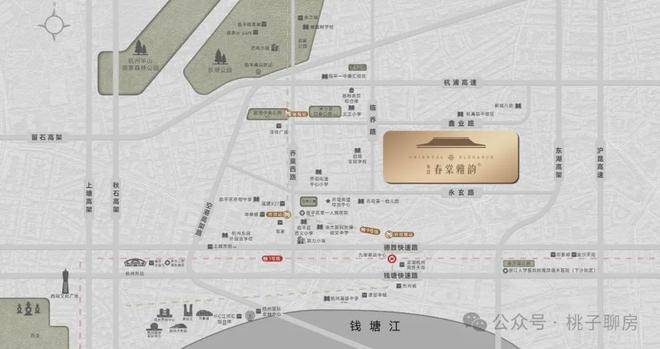 轨道交通:直线距离约800米地铁9号线翁梅站,5站钱二(红普南路),对接钱江新城、杭州东站、客运中心的快速互联。