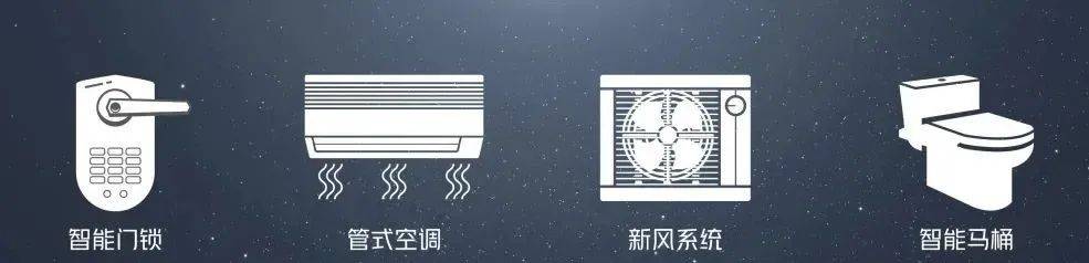 同时,考虑到都市人群的生活习惯于节奏,社区产品均采用装修交付。户内设置智能门锁、智能马桶等智能化设备,全屋新风系统和客餐厅的管式空调,也为未来生活带来了更多的舒适度。