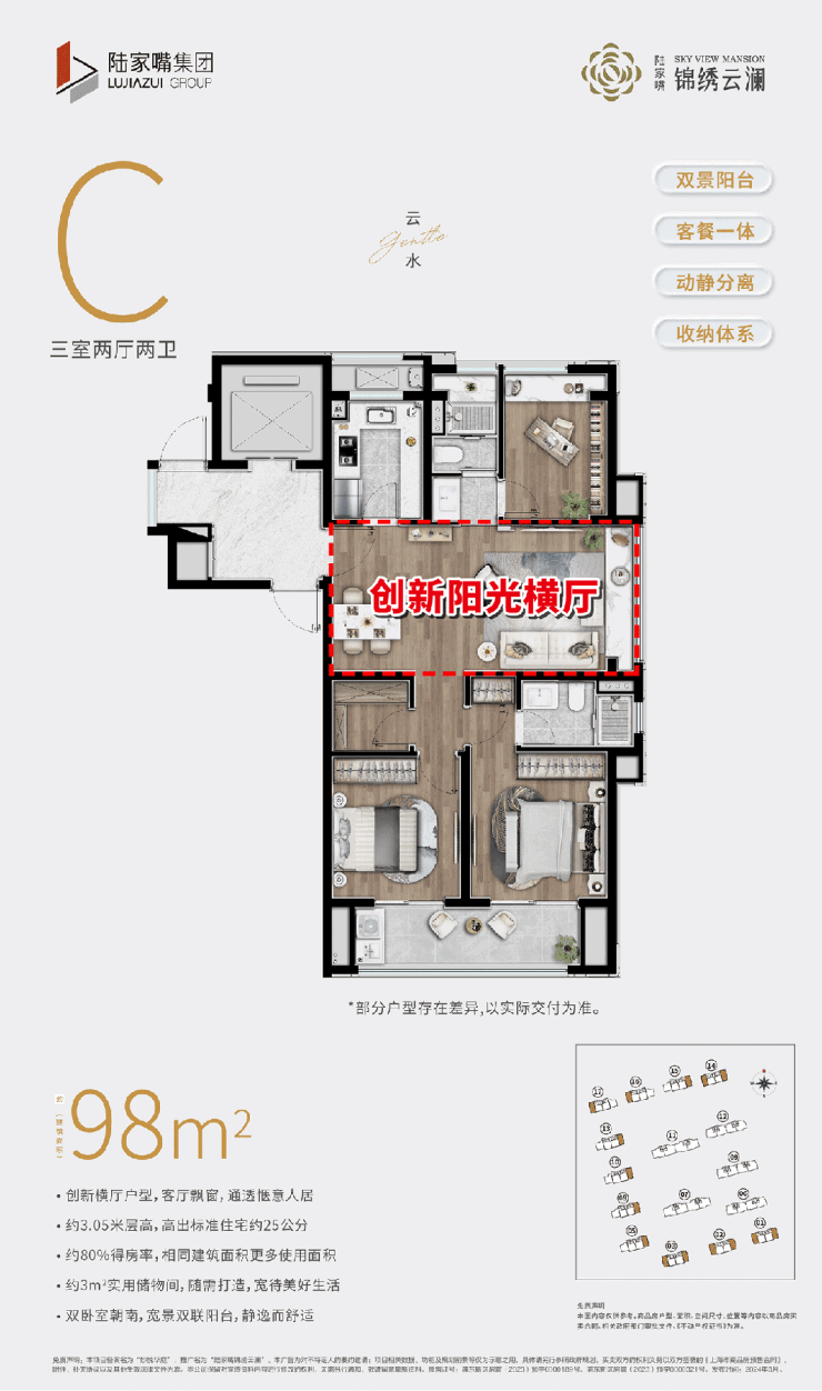 第二,创新横厅+双联阳台。