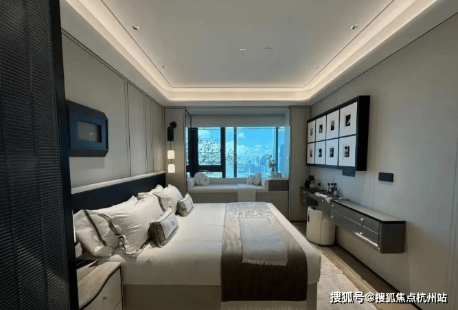 主卧背景墙更以威尼斯安缦酒店同款树瘤木,搭配巴黎宝格丽酒店同源羊皮纸 ,将全球顶奢酒店的居住质感搬进家中,每一处选材都彰显塔尖人居的高奢基因!