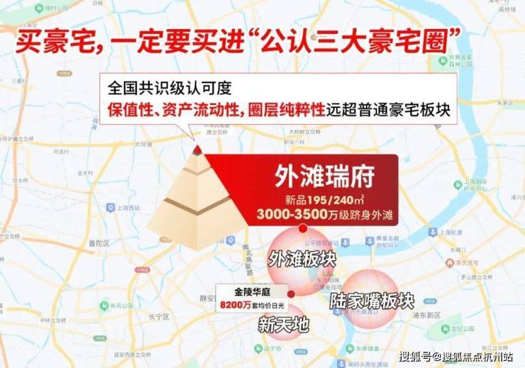 上海三大豪宅圈——外滩、新天地、陆家嘴已成型。 而 外滩是其中更具全国号召力的“价值标杆” !此前,金陵华庭以套均约8200万实现“日光”,这份热度的背后是来自全国高净值人群的集体认可: