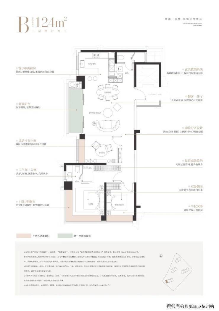 建面124㎡3房样板间展示如下: