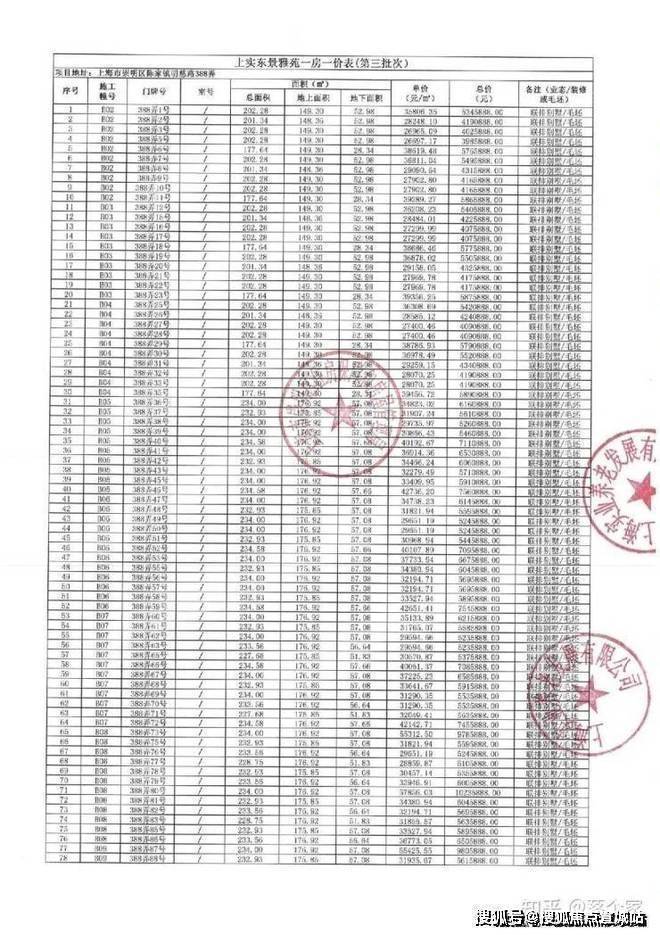 一房一价表发布