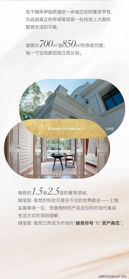 在上海一众豪宅之中,无论是大平层、风貌别墅、合院、新里,惟有城市独墅庄园尤为稀缺。曾三度入榜“中国十大超级豪宅”的绿宝园王者归来,重磅推出的绿宝园•翡梵,单栋地上二层建面约700-800㎡的恢弘尺度,在亿元级豪宅中独“墅”一帜,让经典奏响了凯旋进行曲,成就上海法式别墅的世界级标杆之作。近10年来上海新房市场,纯粹由建面约700㎡起独栋别墅产品组成的项目,绿宝园•翡梵是唯一一个。