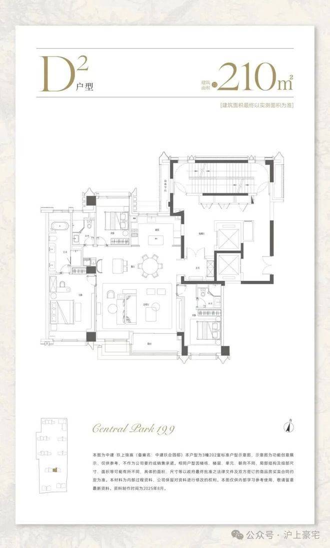 建面约210㎡,分为中间套与边套产品:
