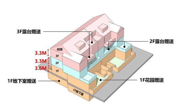 从内部空间体系来看,地上三层,层高分别是3.6米、3.3米和3.3米;每个单元一梯两户,每户均拥有类独立电梯厅;一楼带地下室及庭院,并通过创新退台式设计为二楼和三楼打造私家空中花园,形成户户有花园的墅居生活方式。