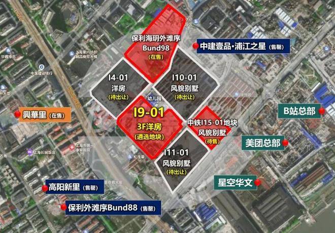 地块北侧,2024年11月28日,保利发展&上海建工以总价28.71亿拿下杨浦区N090601单元I5-01地块,楼面价81960元/㎡ ,溢价率17.09%。项目案名保利·海玥外滩序BUND98,于2025年5月中旬首开,两次开盘认购率均超过200%,整盘成交均价约12.7万/㎡。