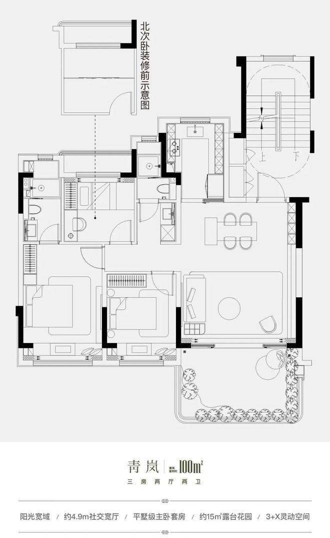 创新性设计包括户户15-23㎡空中花园、独立电梯厅及双套房布局(148㎡户型)