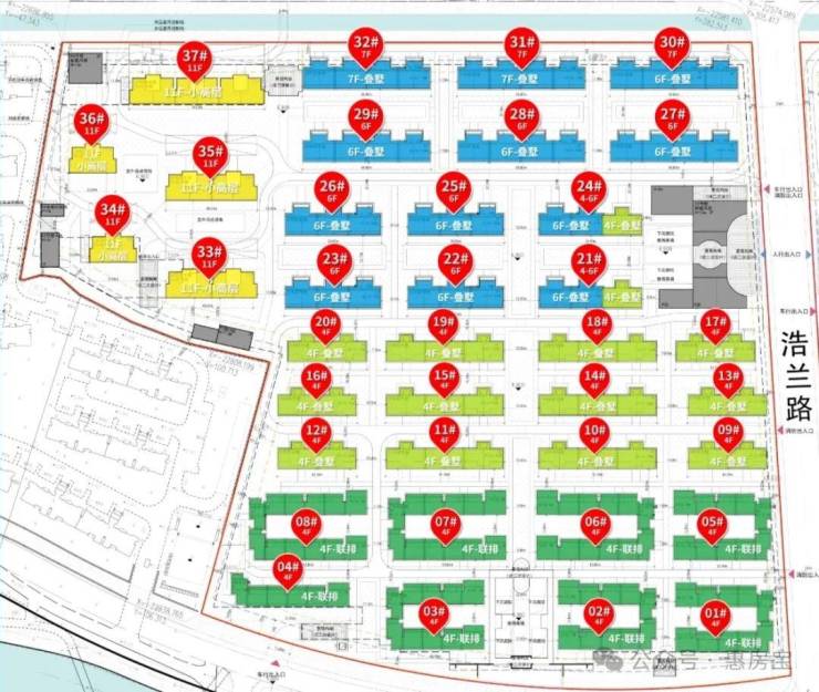 其中小高层住宅约176套,4F叠墅约80套,6-7F墅约60套,4F联排产品约26套!