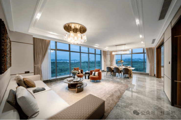 ·全景落地窗:大面积设计全景落地玻璃窗,私揽江域视界