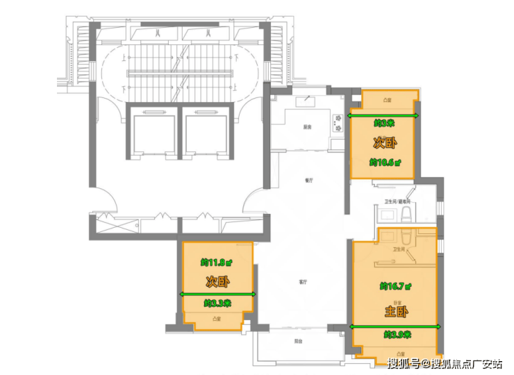 卧室的尺度十分慷慨,即使是最小的次卧轴线面宽也有3米多。