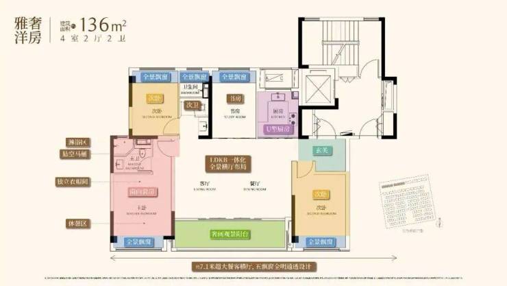 作为全能改善的典范,建筑面积约136㎡户型首先通过超大横厅面宽、双联阳台、室室飘窗等优势,击中改善客群 “怕拥挤、爱通透”的需求,让小户型的居住尺度,也能拥有远超同面积段的奢阔与敞亮。