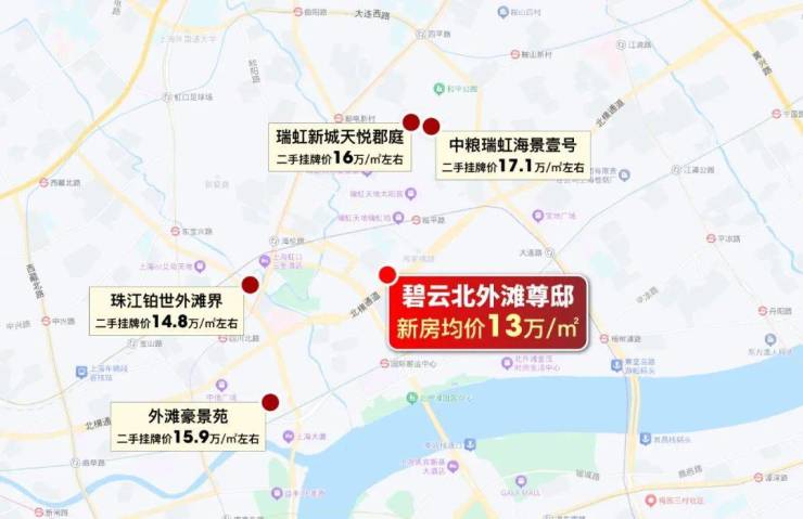 区位:虹口内环北外滩核心腹地,直线距离黄浦江约1公里,毗邻瑞虹新城与北外滩核心区
