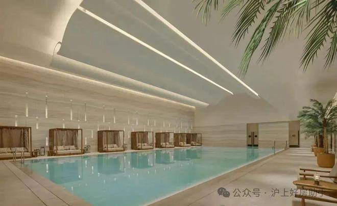 会所内的泳池上方做流畅且立体的吊顶线条,造型现代且富有层次感。这样的设计不仅提升了空间的视觉效果,更营造出一种轻松、悠闲的度假氛围。