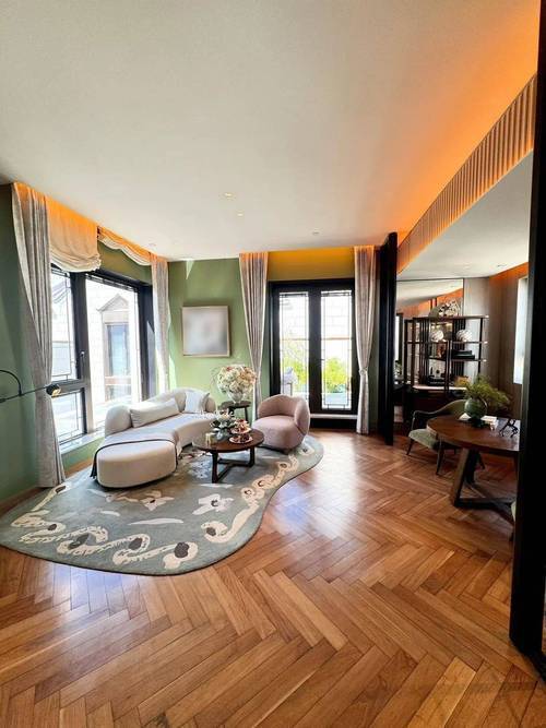 纯海派风貌合院:由国际大师傅厚民操刀,复刻石库门经典元素,12米面宽客厅配全景落地窗,既保留拱券造型又解决传统建筑采光问题,社区中央园林融合江南造景,尽显老上海雅致格调。