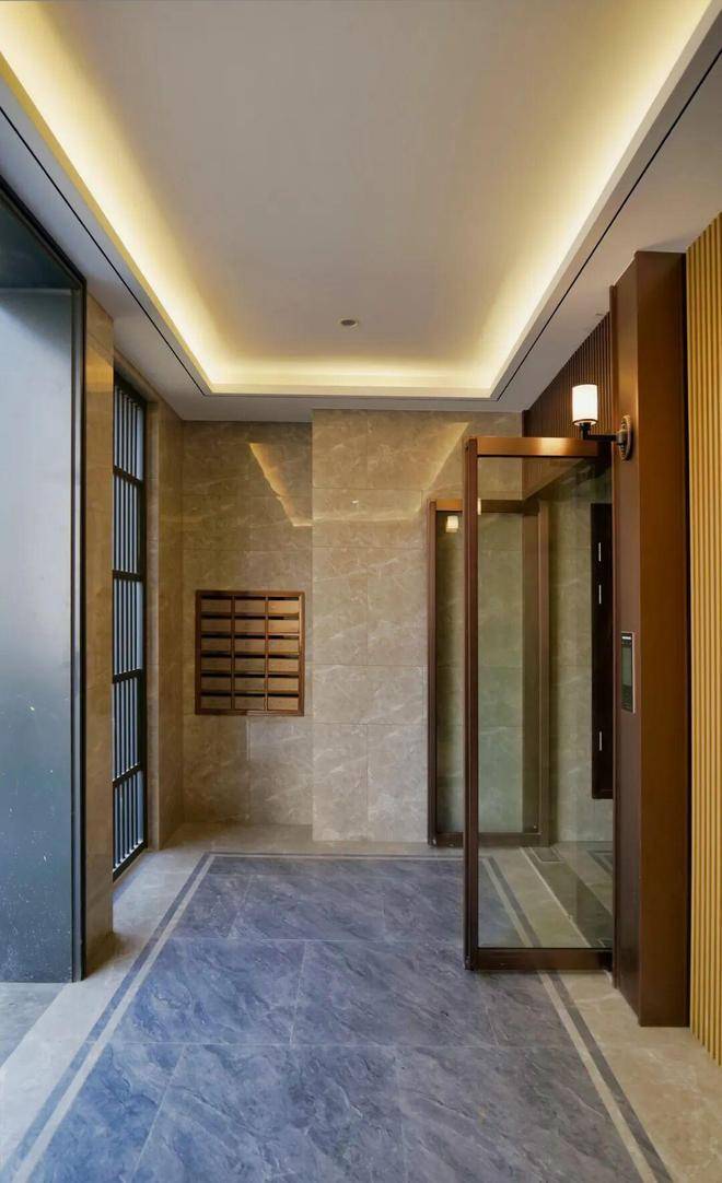 同样质感斐然的还有入户大堂内部。