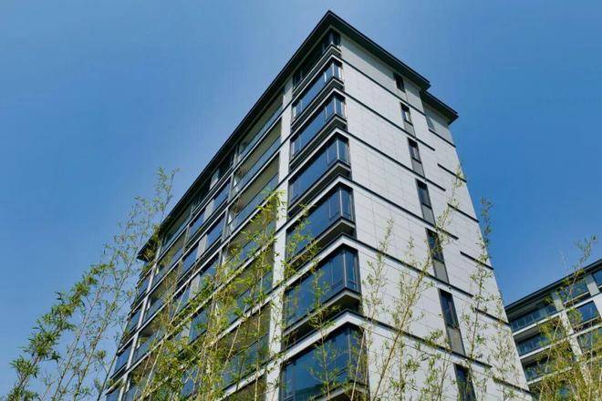 流畅的建筑线条搭配着大面积玻璃,再配合开阔的楼间距,简约大气又颇具辨识度。