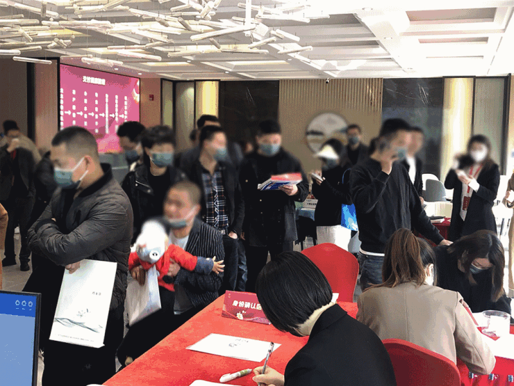 在热闹的交付现场,业主朋友们正在有序排队办理交付事宜,一派喜气洋洋。