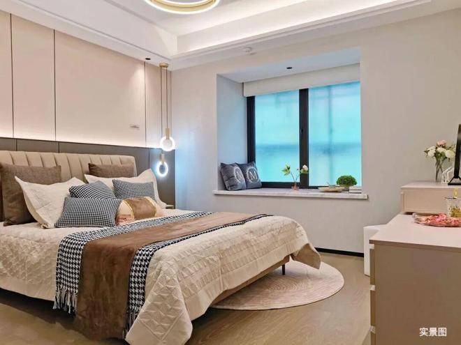 • 惬意主卧:主卧套房设计,独立卫生间及飘窗,塑造尊贵归属感