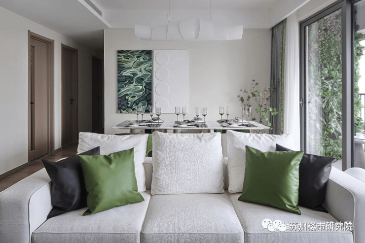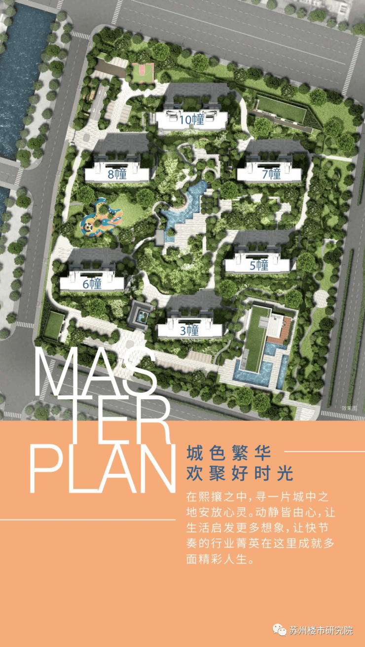 3)风雅园林:绿植的布置结合苏州当地气候,注重季相和色彩变化,四时观景,处处有景,知名植栽树阵(如樱花、银杏、红枫),舒缓大草坪、聚会廊架、叠级水景、阳光沐场等,享受自然,不如就住进自然中。园中景观布置方式采用古典园林建造美学,园中小径,曲径通幽,移步易景。