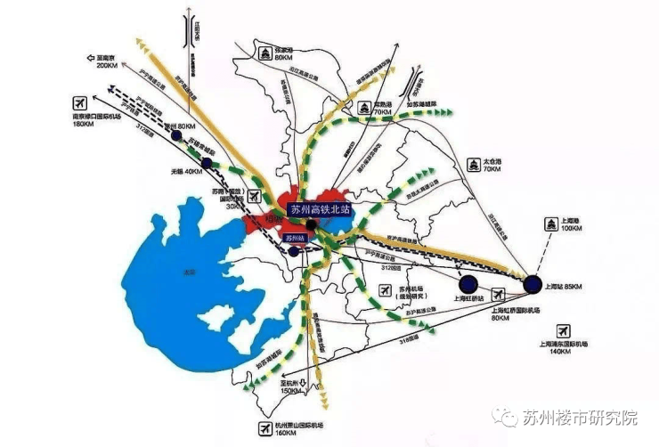 未来,通苏嘉甬高铁与京沪高铁、苏湖城际与苏锡常城际将于苏州北站交汇,「双十字」线把苏州与周边区域全部连接,5铁并站,900S直达虹桥、4小时联动北京。