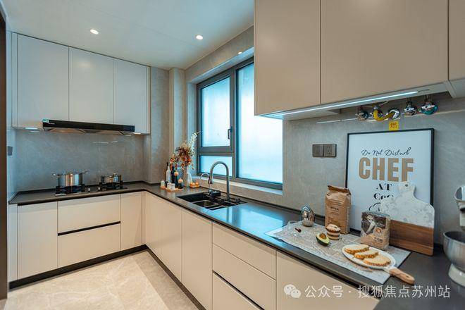 再如,厨房配置了多功能洗涤盆和可抽拉式龙头以及仿瀑布出水龙头等设计。这些设计大大提高了备菜效率,增强了使用的便捷性。