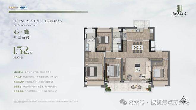 金融街融悦沁庭是苏州吴中太湖新城的纯洋房社区,主打改善型住宅,容积率仅1.6,配备中央空调、新风系统、地暖等高端设施。