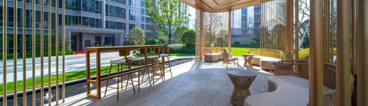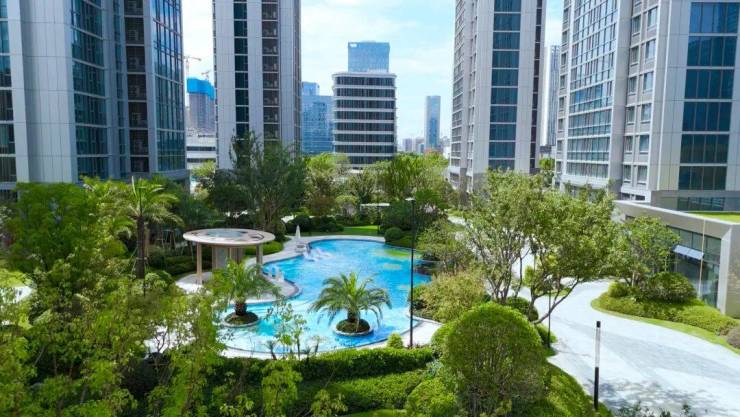 盛元·东江汇匠心打造的沉浸式度假园林,以双中庭花园为骨架,五重复合式景观为脉络,营造出四季皆景的诗意空间。