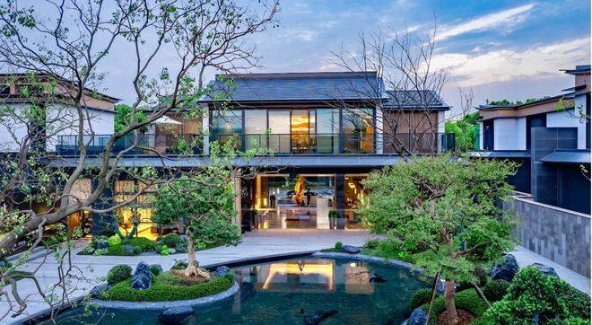 设计荣誉:由gad建筑团队操刀,融合新中式风格与山水景观,获2024伦敦设计金奖,每栋配备私家庭院(最大1200㎡)及禅意会所