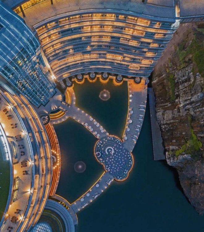 每个房间都设有阳台,可以欣赏到整个深坑的壮丽景观。瀑布、湖泊和攀岩设施一应俱全,打开阳台门,水声潺潺,让人心情愉悦。