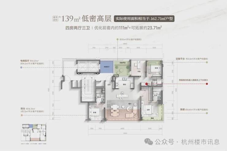 ③高层约108㎡(四房两卫)➕128㎡➕139㎡(四房三卫)、叠墅约225㎡(户户私家电梯,6.6地下室挑高)