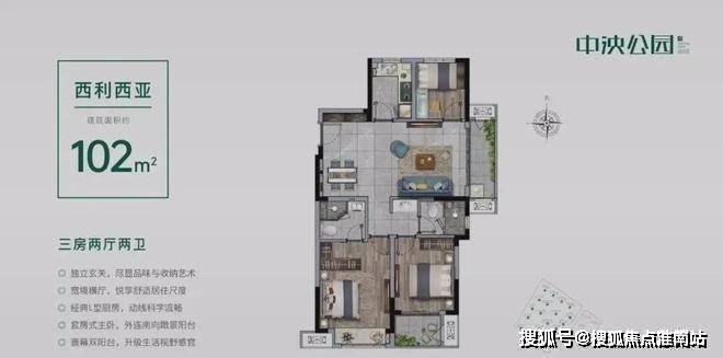 101平-3-2-2,17幢东边户一梯两户,仅剩十余套房源,优质楼层可选性不高。成品三房两卫,户型如下,总价210万左右