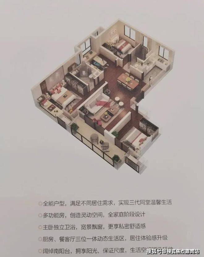120平4-2-2,总价240万-250万3+1房,九宫格格局,三叶草户型,双阳台,适合人口较多的入门改善客户