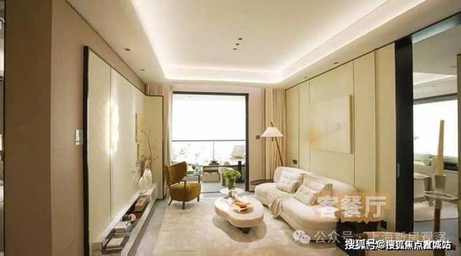 客餐厅一体化设计,尺度不凡的客厅搭配宽景阳台,整个南向采光面非常大。