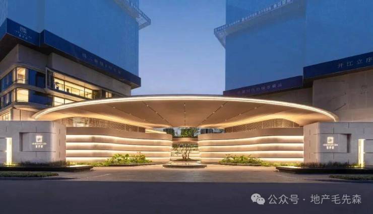 外立面:大面玻璃幕墙+石材,转角曲面,算是改善标配了