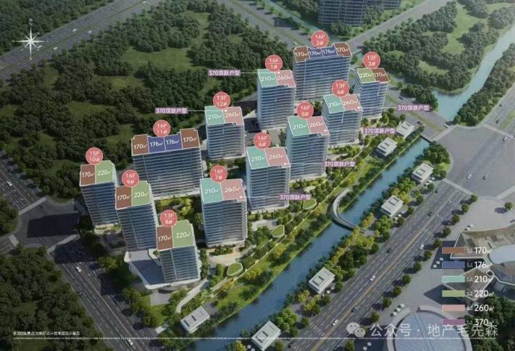 整盘户型涵盖170㎡,176㎡,210/220㎡,260㎡和380㎡(稀缺顶跃)。改善起步。