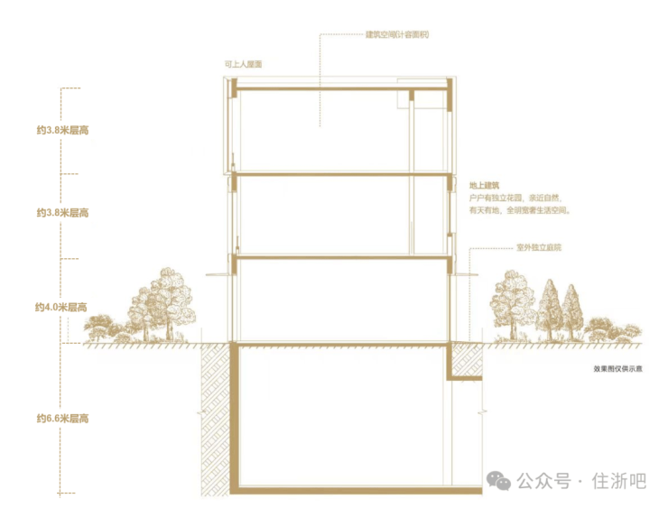 【层高】地上3.8-4m,地下室总高6.6m