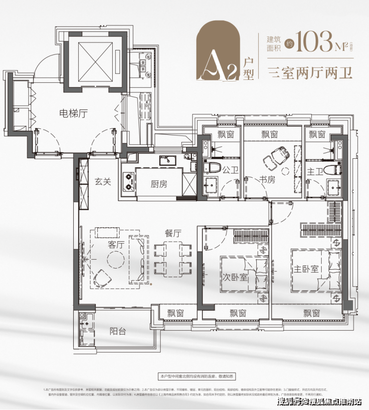 这套建面约103㎡动静分离户型打破常规,兼具三个房间和南向超阔面宽的横厅,以此承载从二人世界到三代同堂的全生命周期需求。